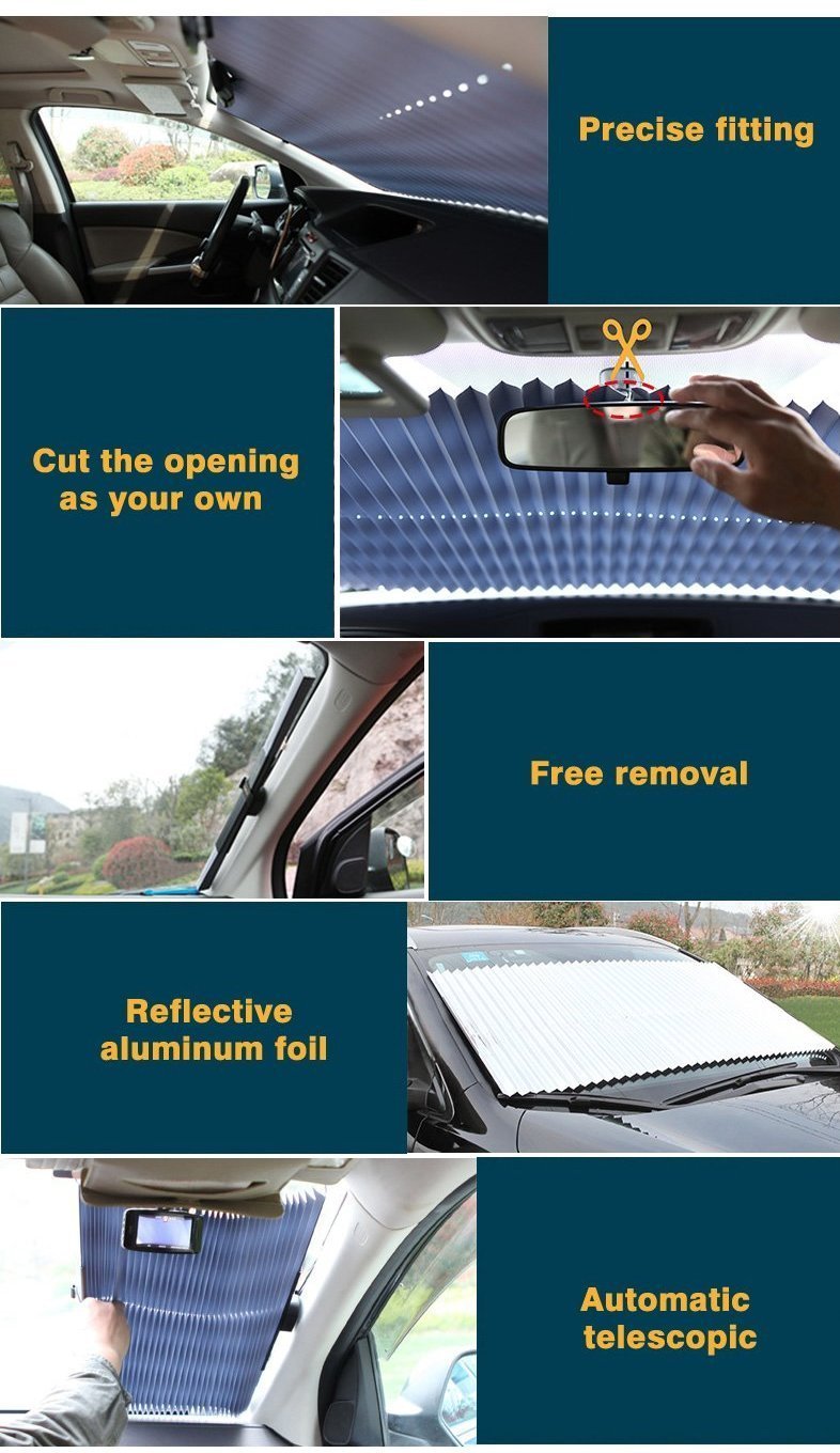Annoyed by the burning heat after parking your car in summer? In a hurry but the seats are too hot? Always need to turn the AC in full blast to cool the air? Worse, you or your loved ones may suffer from heat stroke! We have the perfect solution...introducing TempDrop™, the revolutionary visor that keeps your car's interior cool even when parked under the sun! It's also UV-protective so your dashboard won't crack & the finish won't fade.